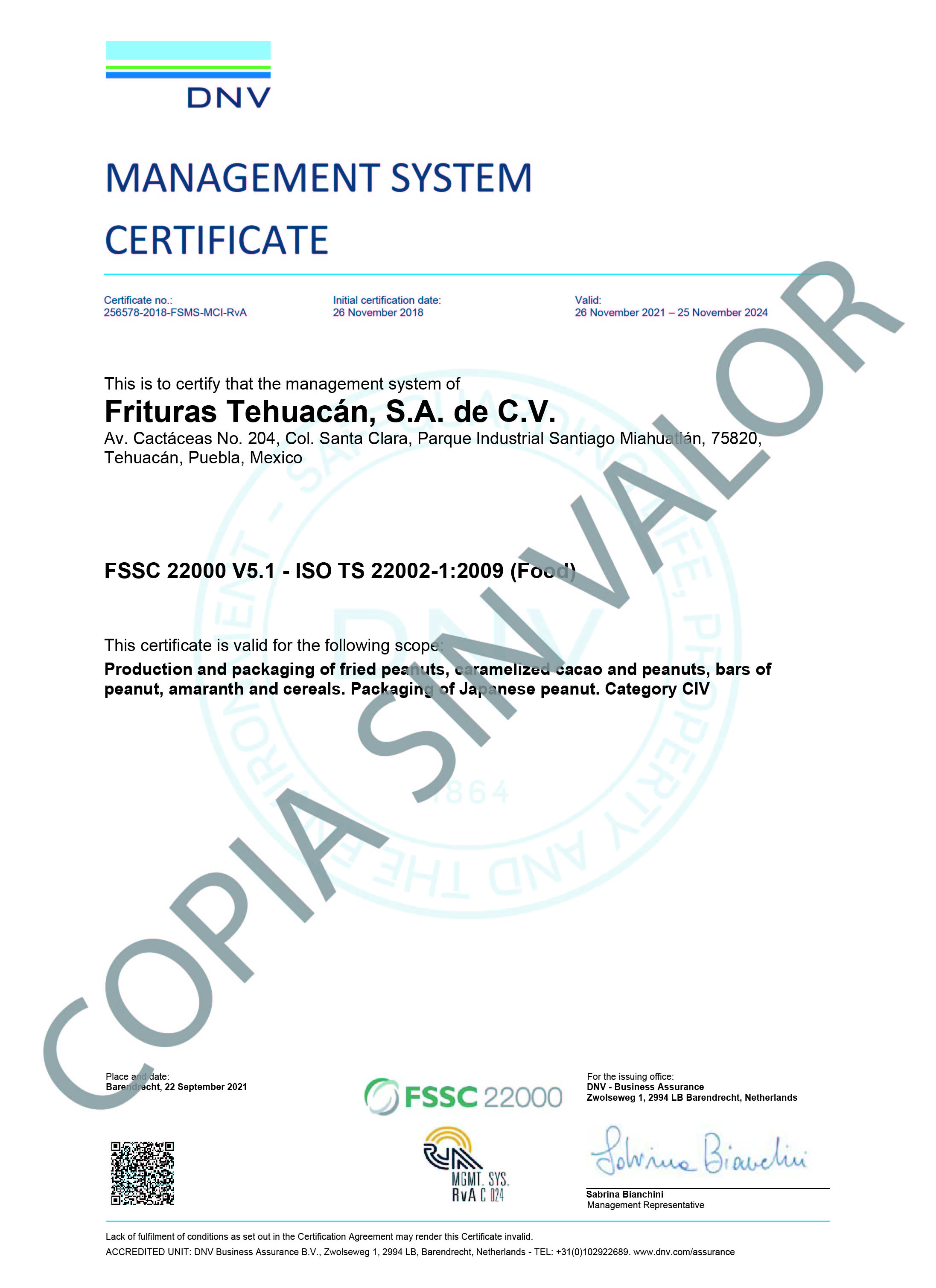 La Certificación del Sistema de Seguridad Alimentaria FSSC 22000 permite una gestión eficaz y solida en el sistema de seguridad alimentaria con el fin de cumplir con los requisitos de nuestros clientes y consumidores.